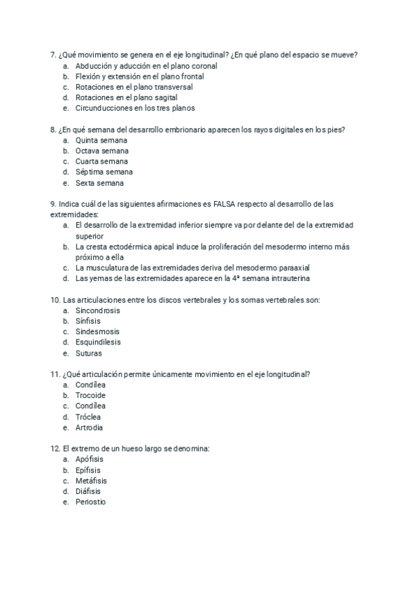 Examen anatomía humana 2024