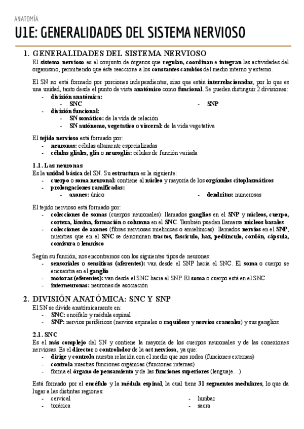 Resumen de los apuntes de temas 37-38 y 39 de neuroanatomia, con toda la información básica e importante, anotando que cosas son más importantes y entran en el examen dicho por la profesora. Más tarde subiré los demás temas restantes.