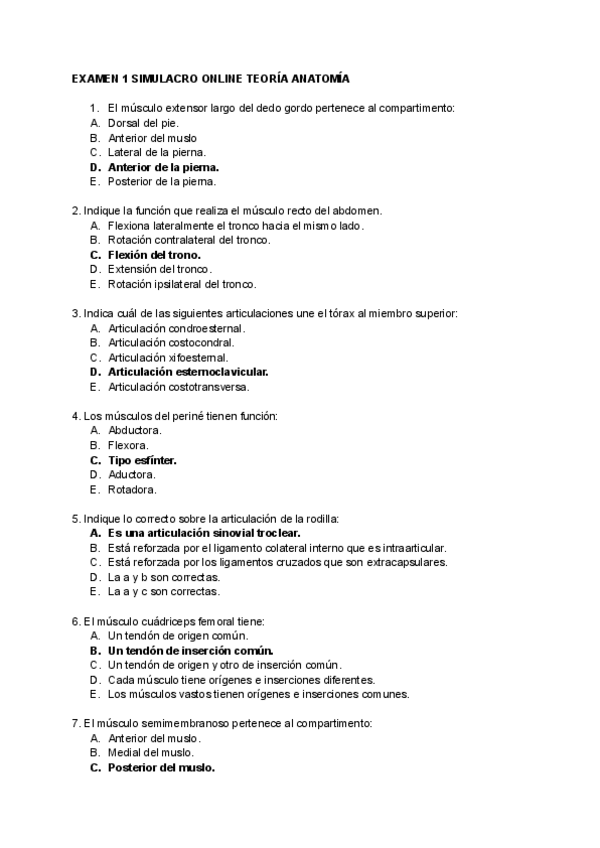 Examen 1 teoría simulacro online anatomía miembro inferior y tronco