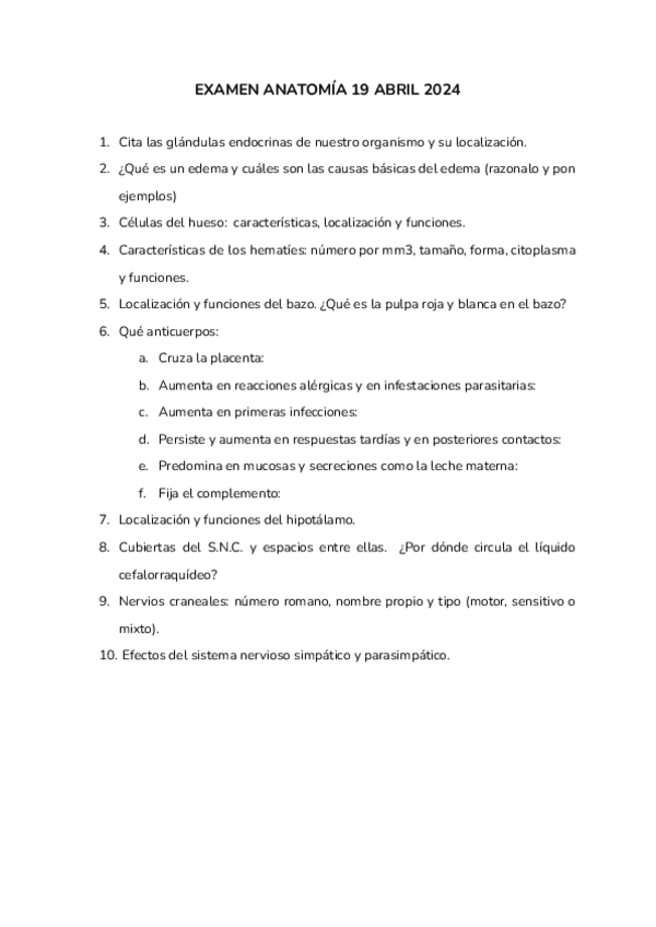 EXAMEN ANATOMÍA 2º CUATRI