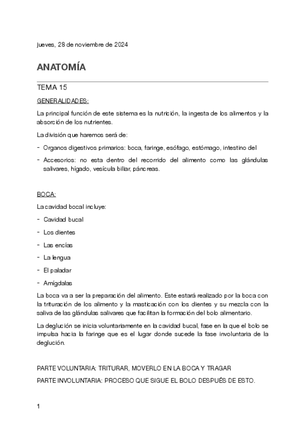 Apuntes sobre el aparto digestivo, bien explicado, conciso e ideal para aprobar tu próximo examen de anatomía.