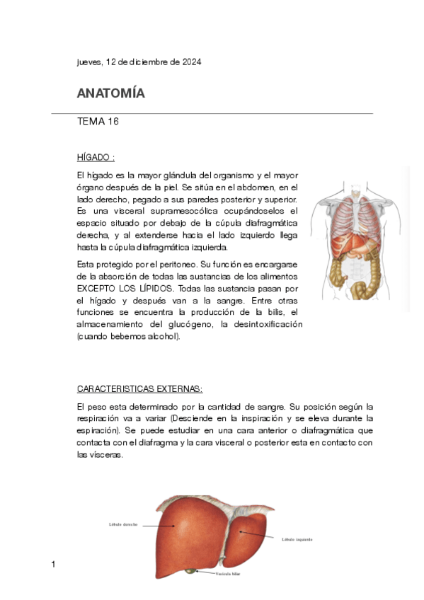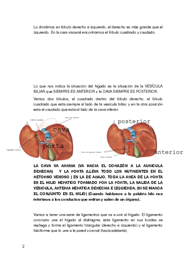 Apuntes sobre el hígado, la vesícula biliar e irrigaciones. Apuntes de anatomía ideales para aprobar tu próximo examen, bastante claros, esquematizados y con imágenes
