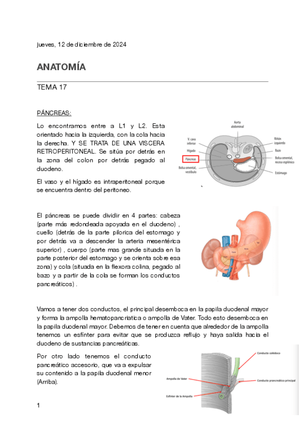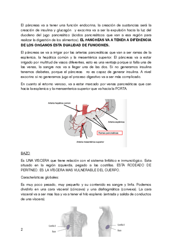 Apuntes sobre el páncreas y el bazo. Apuntes bien explicados, con imágenes y bastante fáciles de comprender.