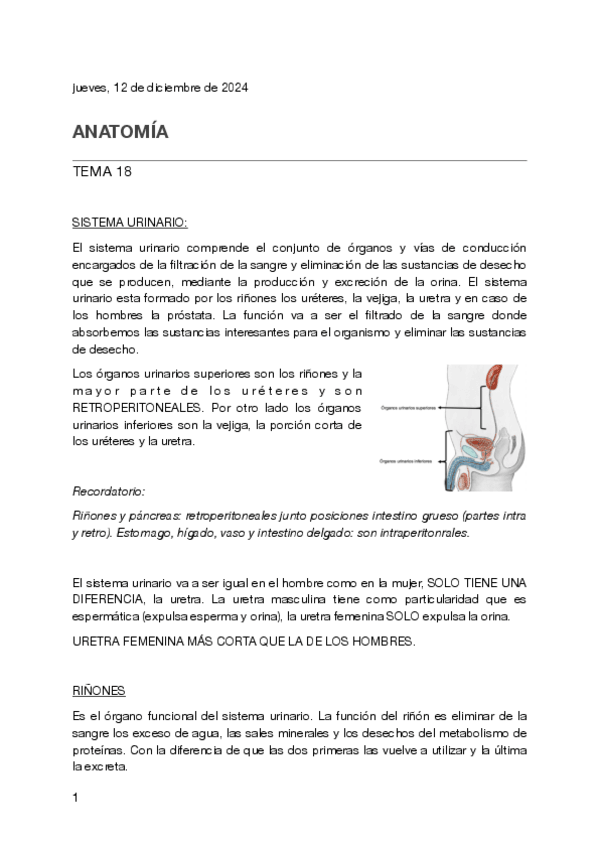 Sistema urinario + riñones. Apuntes fáciles, con bastantes imágenes y fáciles de entender.