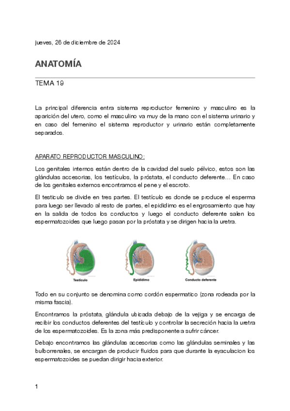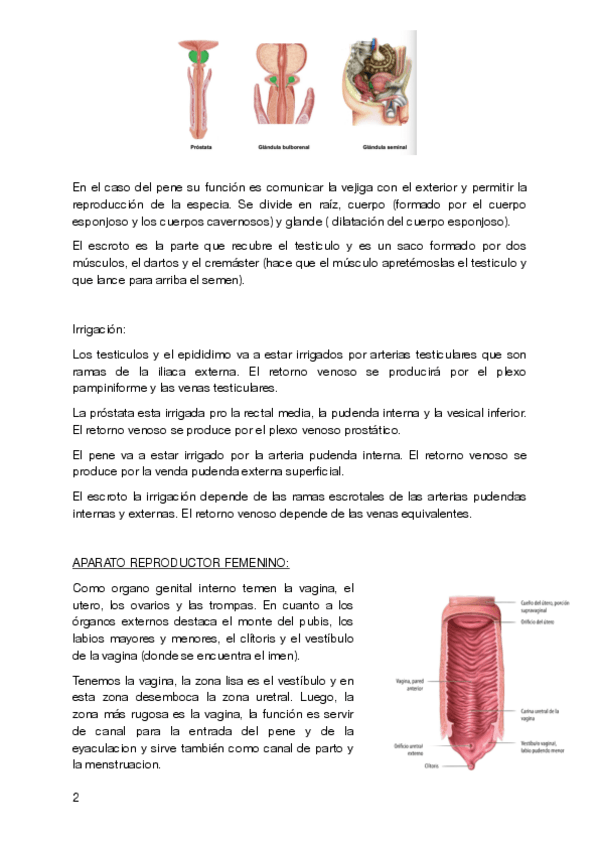 Sistema reproductor masculino y femenino. Apuntes de anatomía bastante resumidos, fáciles de entender y con imágenes.