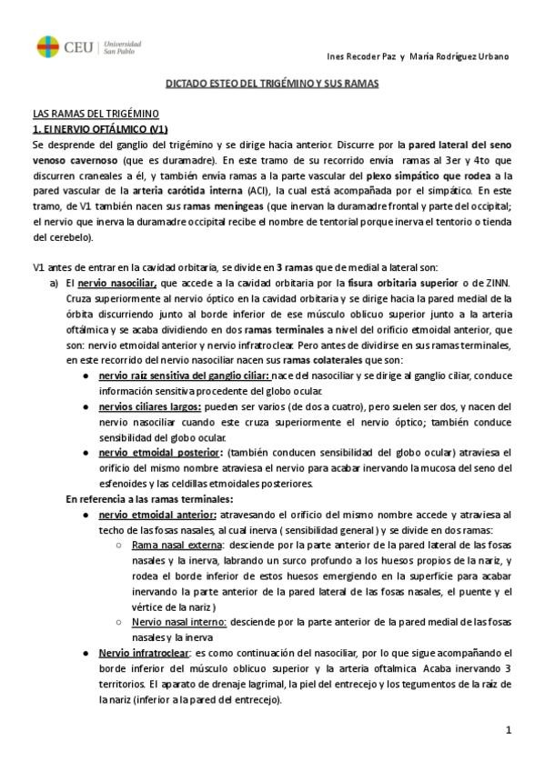 Apuntes a modo de resumen esquematizados del tema 3 del tercer bloque (Cabeza). Basados al 100% en el Gray :D Espero que os sean útiles, mucho ánimo :P
