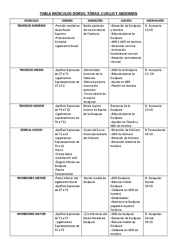 TABLAS MÚSCULOS ANATOMÍA I