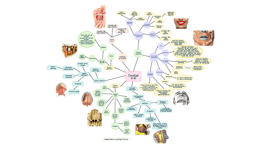 En este mapa mental podrás encontrar la anatomía del vestibulo de la boca, la anatomía de la cavidad oral propiamente dicha, sus músculos, inervación, irrigación, relación y drenaje linfático