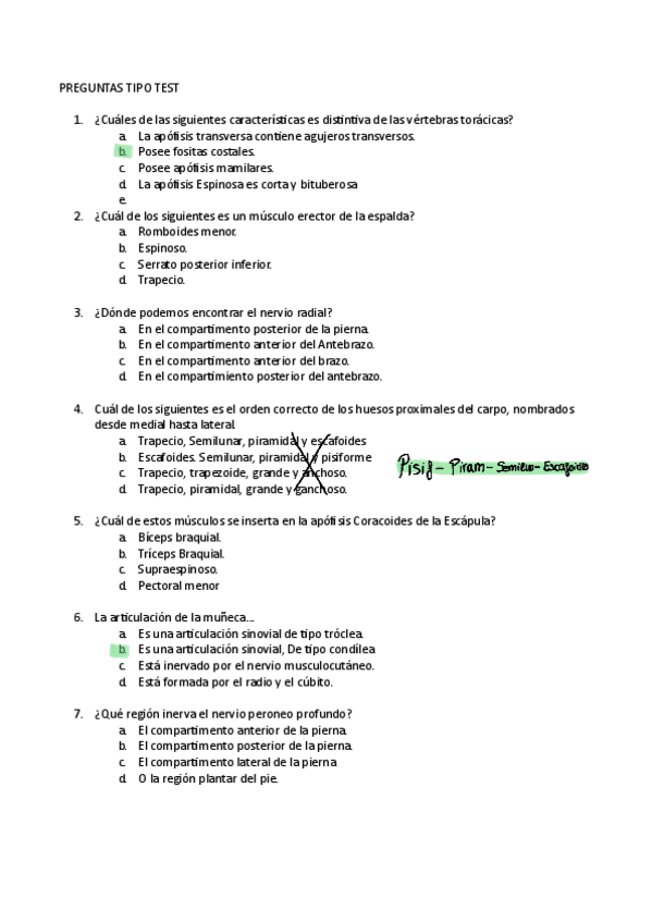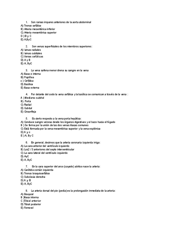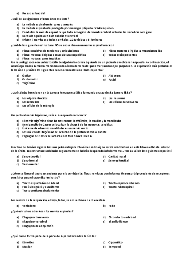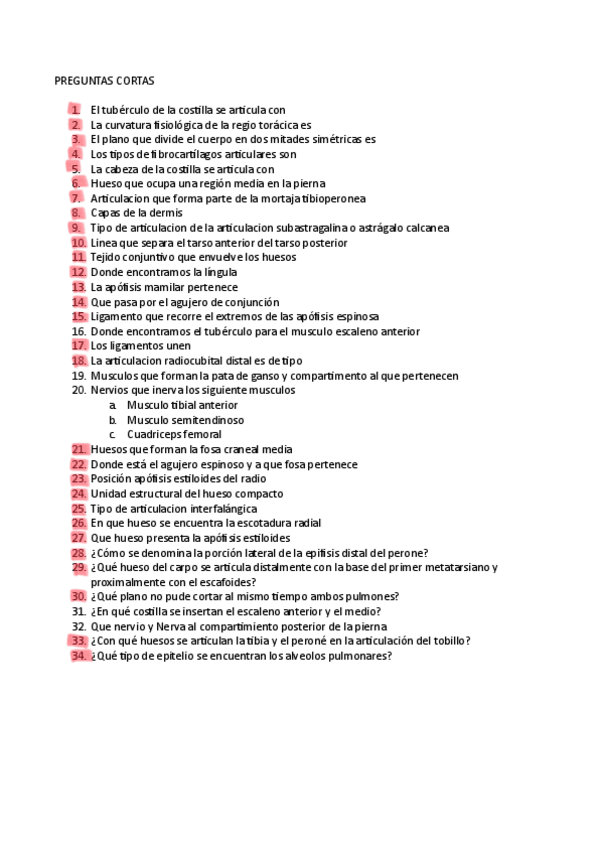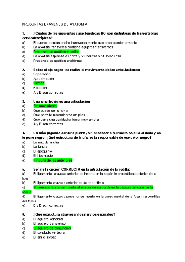 Preguntas de examenes de anatomía, perguntas muy frecuentes donde más de la mitad han caído en diversos examenes finales, test y pruebas
