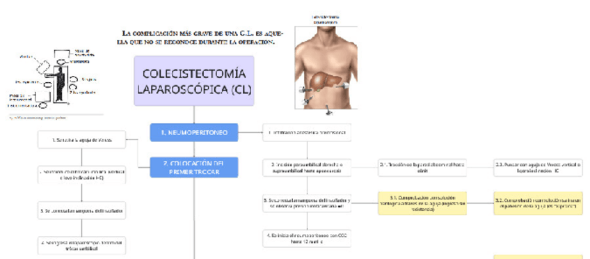 Esquema sobre abordaje quirúrgico colecistectomía