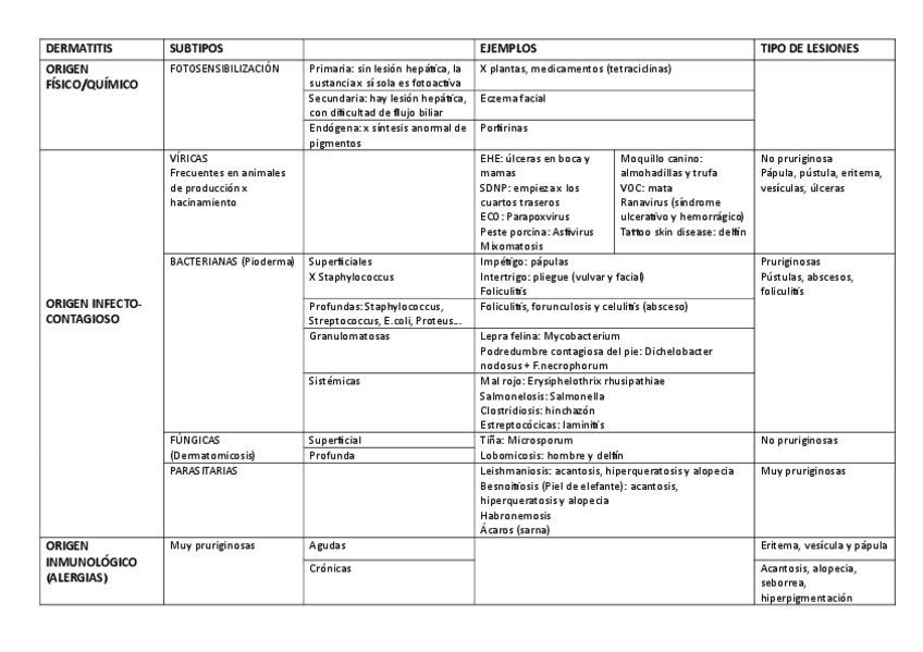 He publicado nuevos apuntes de 4º Anatomia Patològica Especial: DERMATITIS-tabla.pdf
