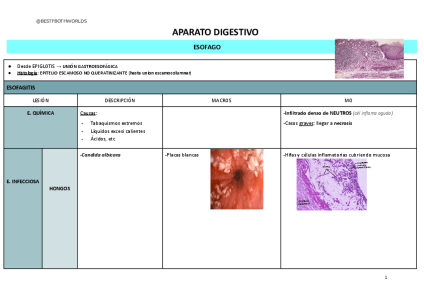 Resumen de los temas de Digestivo (Esófago, estómago, intestino delgado y colon), cabeza y cuello y mama de Anatomía Patológica Especial
