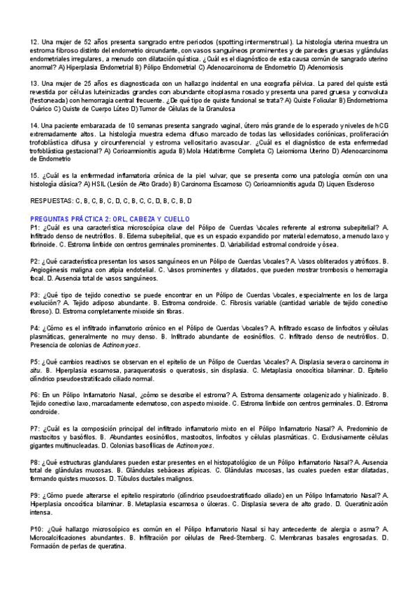 TIPO DE PREGUNTAS EXAMEN PRÁCTICO DE ANATOMÍA PATOLÓGICA (SIN FOTOS)