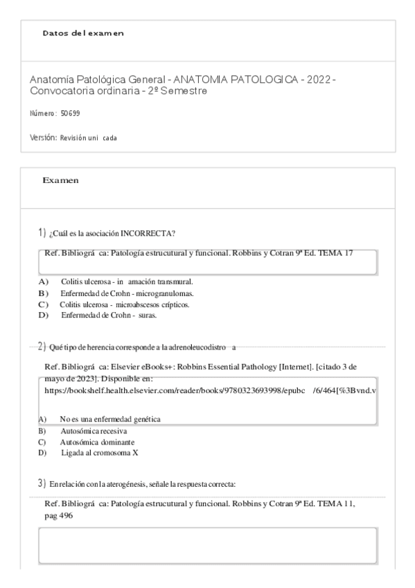 ANATOMIA PATOLOGICA TEST 2º SEMESTRE JUNIO 2023