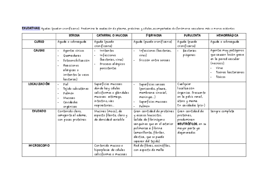 He publicado nuevos apuntes de 2º Anatomía Patológica General: Tabla-Inflamaciones.pdf