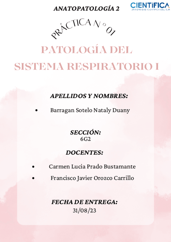 Trabajo de práctica de laboratorio, sem 8, UCSur Curso: Anatomía Patológica 2