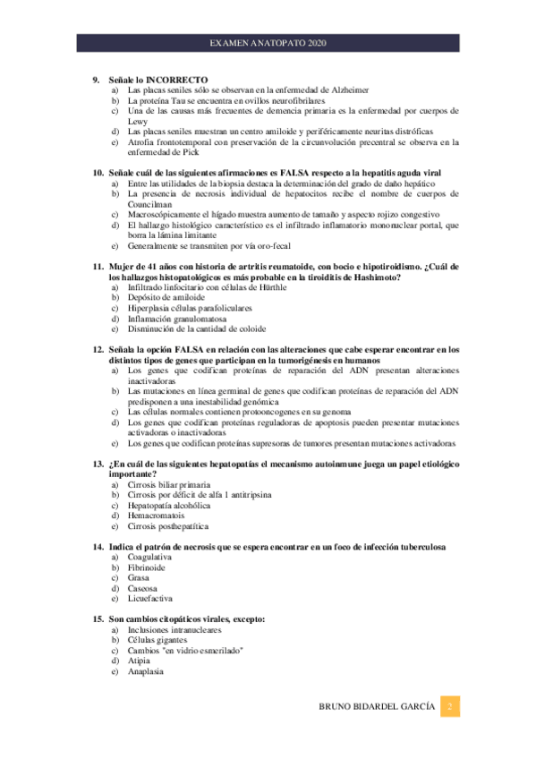 He publicado nuevos examenes de 3º Anatomía Patológica: Examen-Anatomia-patologica-2020.pdf