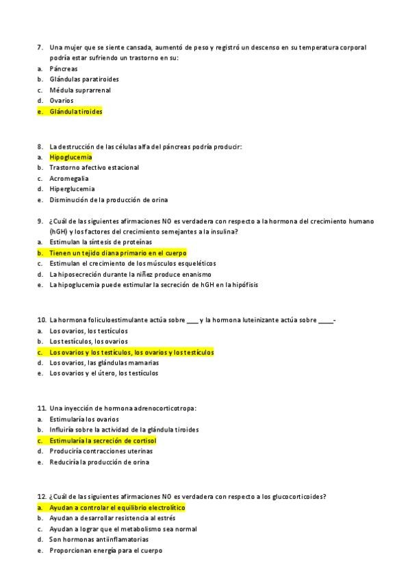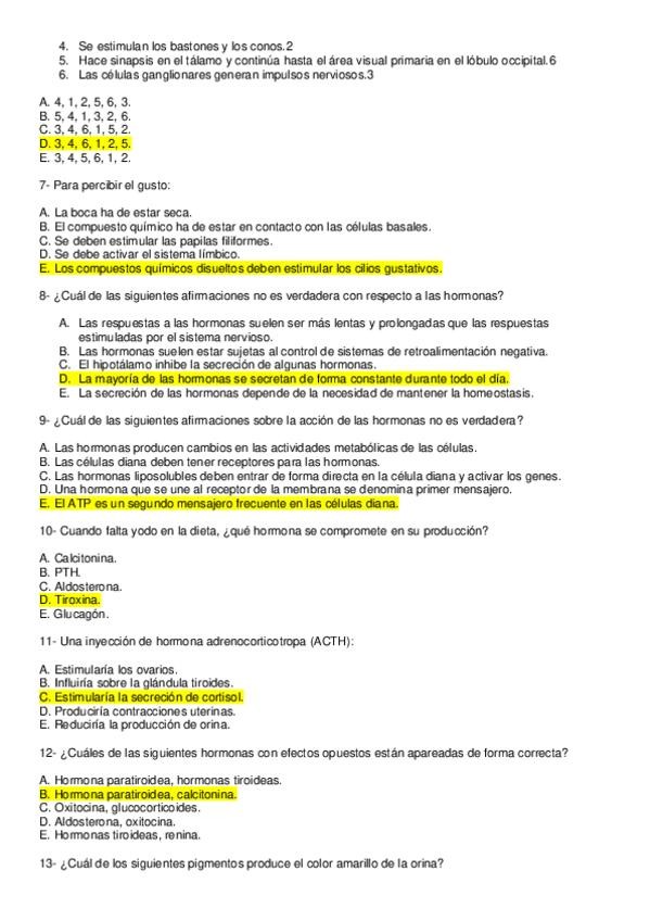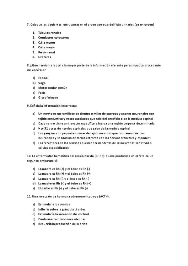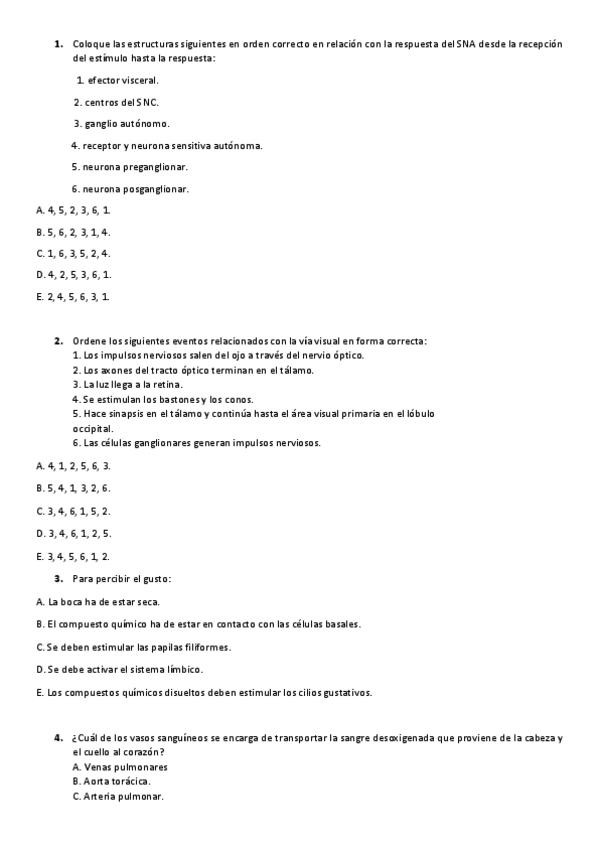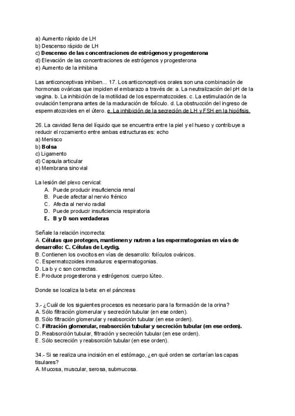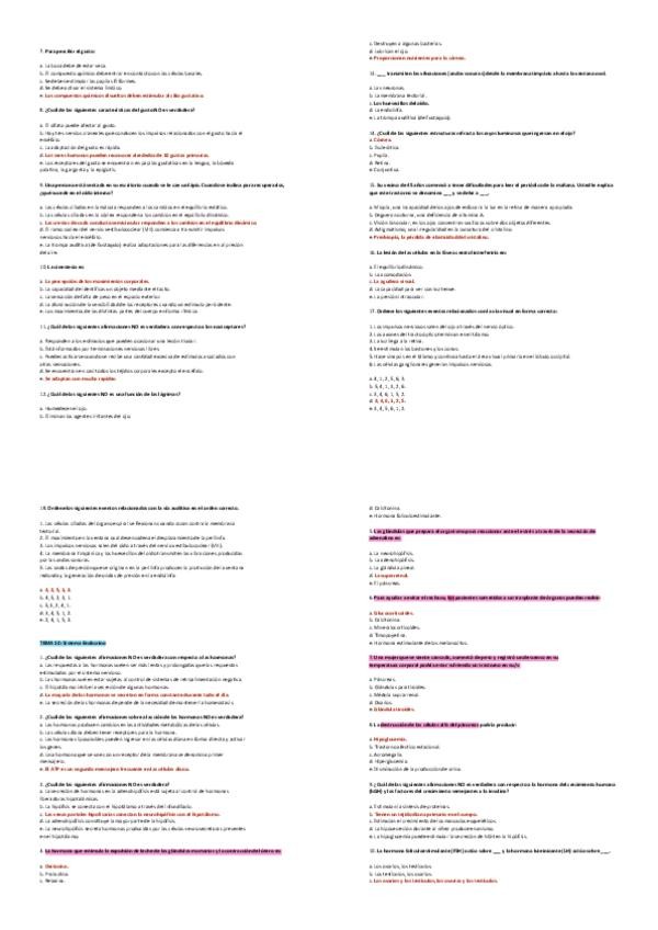 Preguntas separadas de respuestas, de exámenes de varios años.