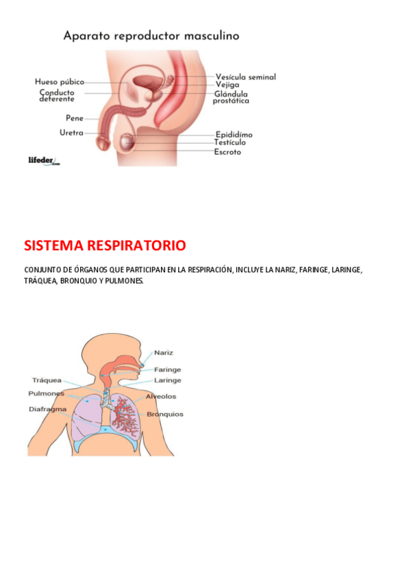 - Aparato respitarorio / Órganos sexuales / Sistema urinario / Sistema digestivo