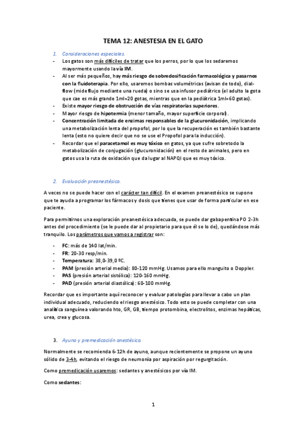 He publicado nuevos apuntes de 4º Anestesiología y Cuidados Intensivos: Anestesia en gatos