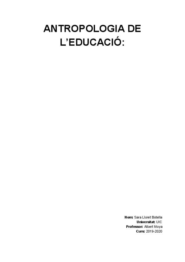 He publicado nuevos apuntes de 1º Antropología: Antropología de la Educación: Antropologia de l'Educació