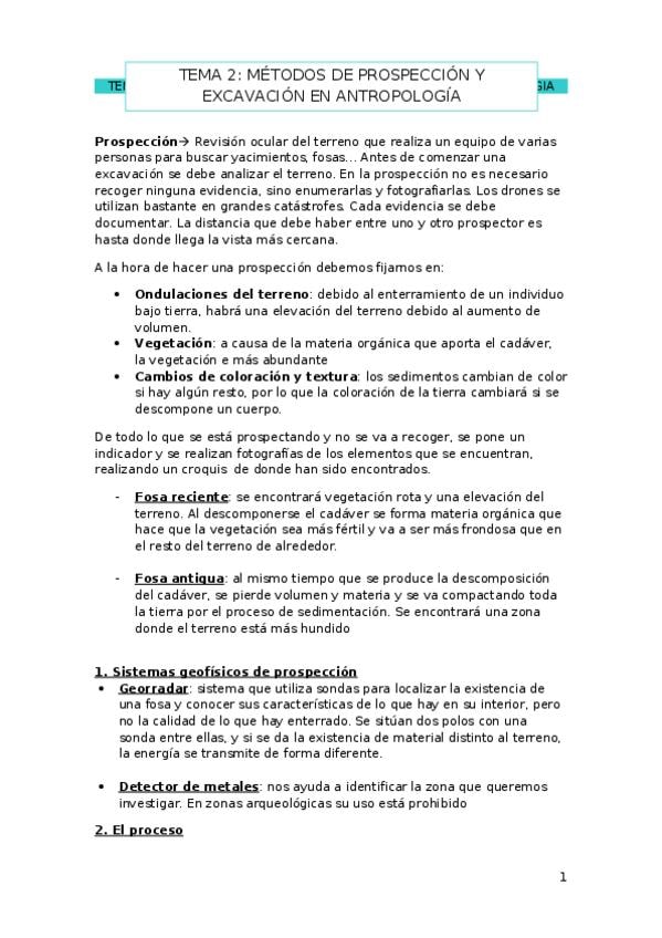 Primera parte del tema; Contenidos, objetivos y definiciones. Excavación arqueológica en contexto forense. La ficha antropológica