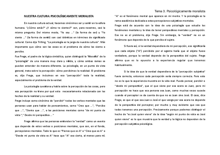 Resumen Tema 3 - Nuestra Cultura: Psicológicamente Moralista