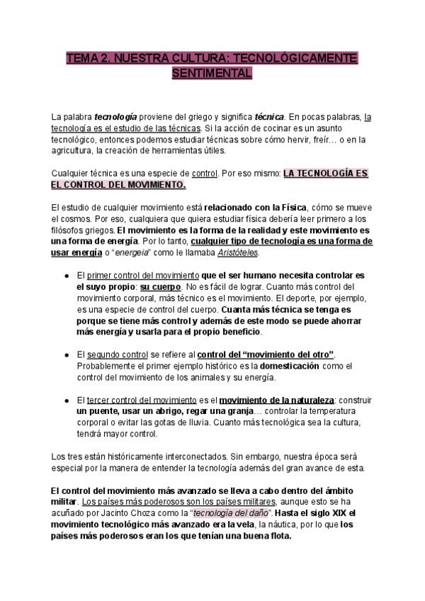 Resumen Tema 2 - Nuestra cultura tecnológicamente sentimental