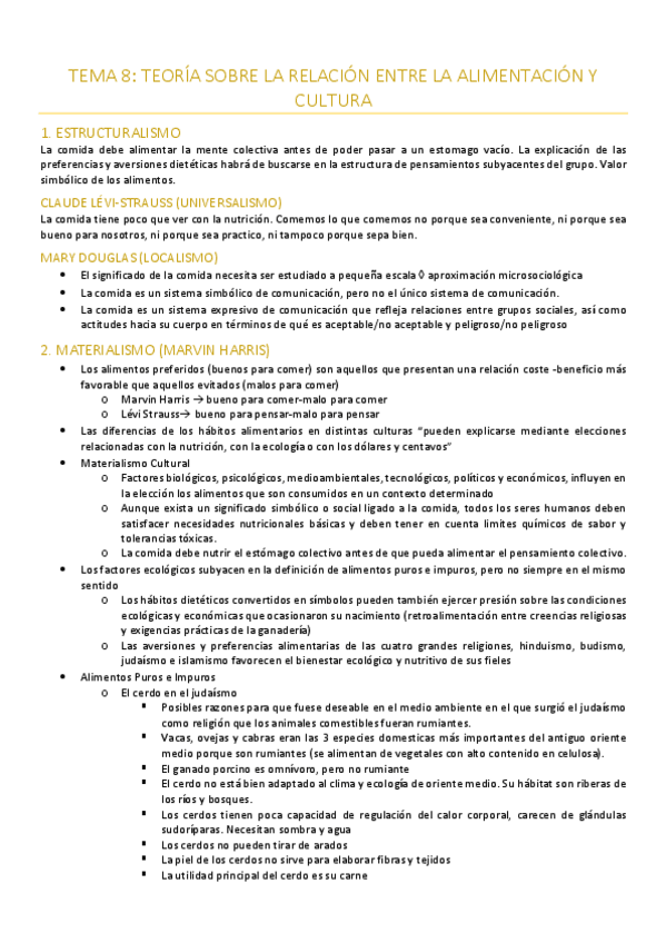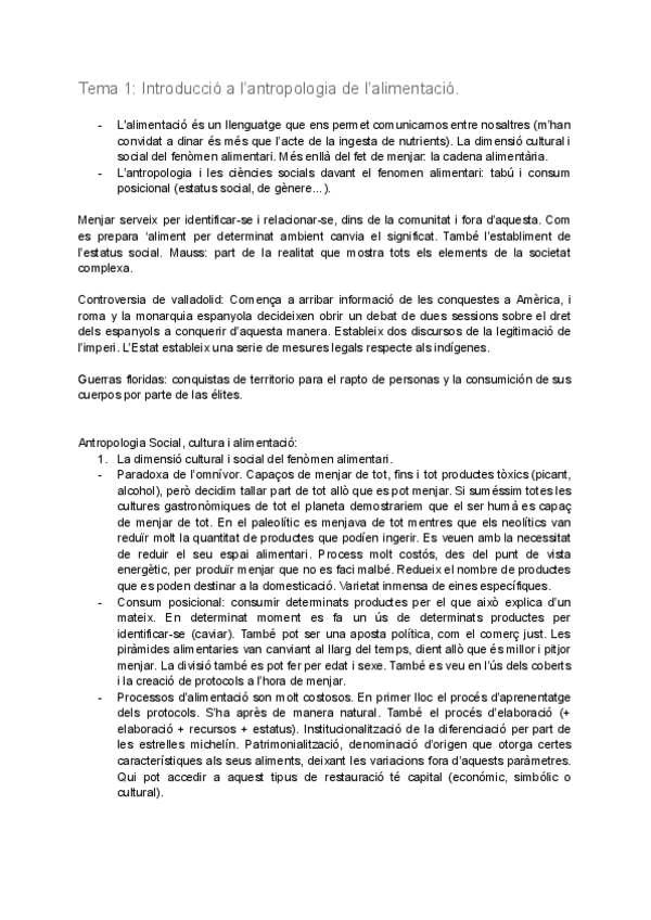 Temario de Antropología de la Alimentación MUY RESUMIDO. Yo con esto saqué un 8.5 en el examen.