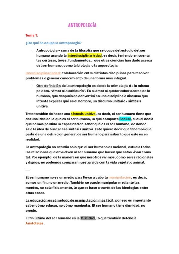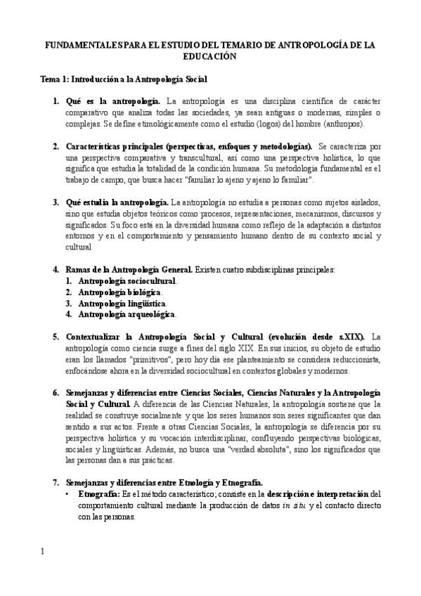 FUNDAMENTALES PARA EL ESTUDIO DEL TEMARIO DE ANTROPOLOGÍA DE LA EDUCACIÓN RESUELTOS CON LOS APUNTES
