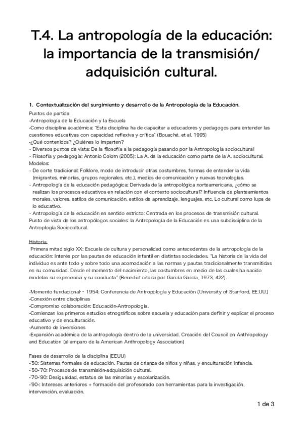 He publicado nuevos apuntes de 1º Antropología de la Educación: T4 pdf