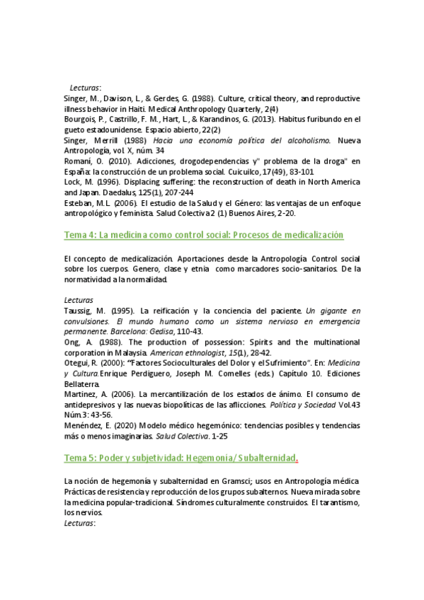 ANTROPOLOGÍA DE LA SALUD Y DE LA ENFERMEDAD temario completo