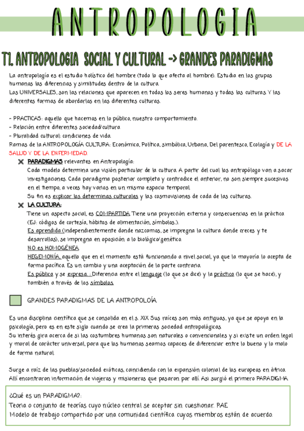 He publicado nuevos apuntes de 1º Antropología de la Salud: Tema 1 Antropología social y cultural Grandes paradigmas .pdf