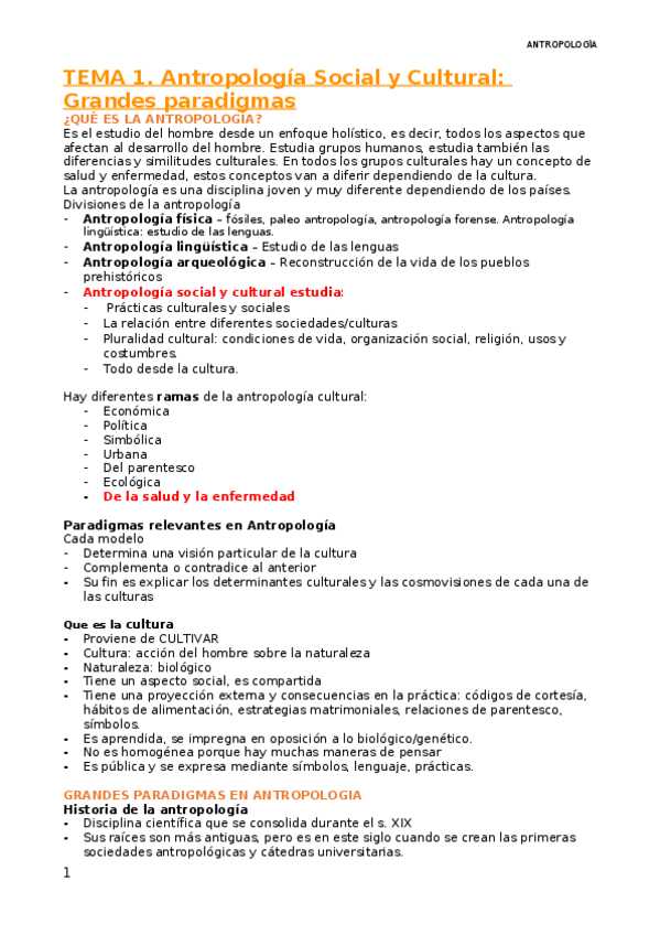 He publicado nuevos apuntes de 1º Antropología de la Salud: Tema 1 Antropología social y cultural Grandes paradigmas .pdf