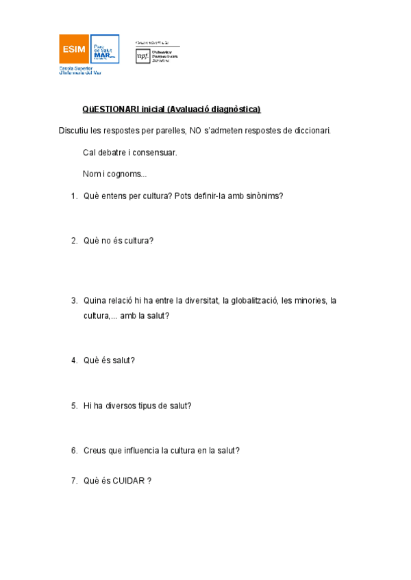 He publicado nuevos apuntes de 1º Antropologia de la Salut: QuESTIONARI-inicial.pdf