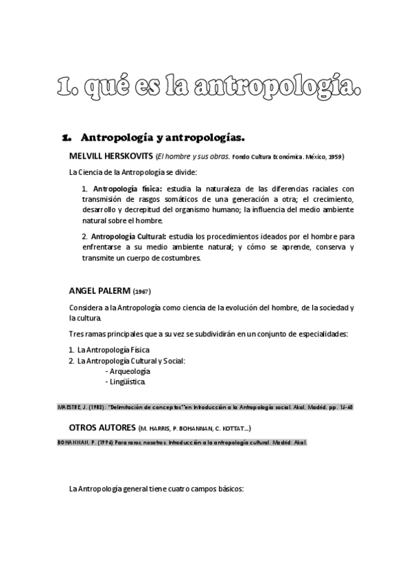 Todos los apuntes del pimer semestre de antropología, con mini resumen de las lecturas leídas.