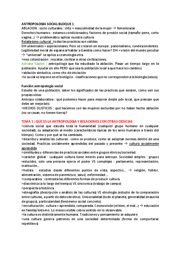He publicado nuevos apuntes de 1º Antropología Social: Temas Bloque I