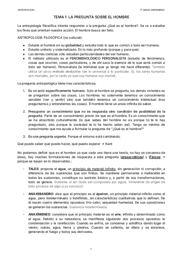 ANTROPOLOGÍA - 1º DE ENFERMERÍA