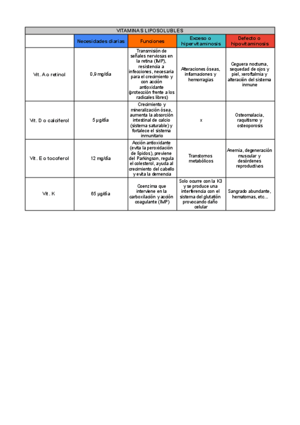 En estas tablas se encuentra la información indispensable de los temas de vitaminas y minerales de forma esquemática y organizada