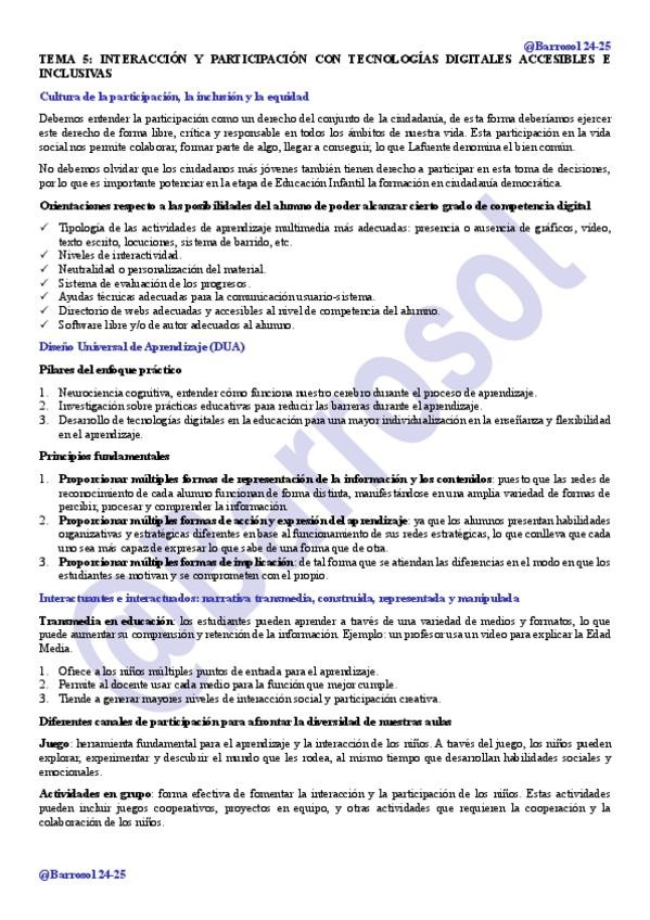 He publicado nuevos apuntes de 2º Aplicación de la Tecnología al Entorno de Aprendizaje: TEMA 5 INTERACCIÓN Y PARTICIPACIÓN CON TECNOLOGÍAS DIGITALES ACCESIBLES E INCLUSIVAS ESQUEMA.pdf