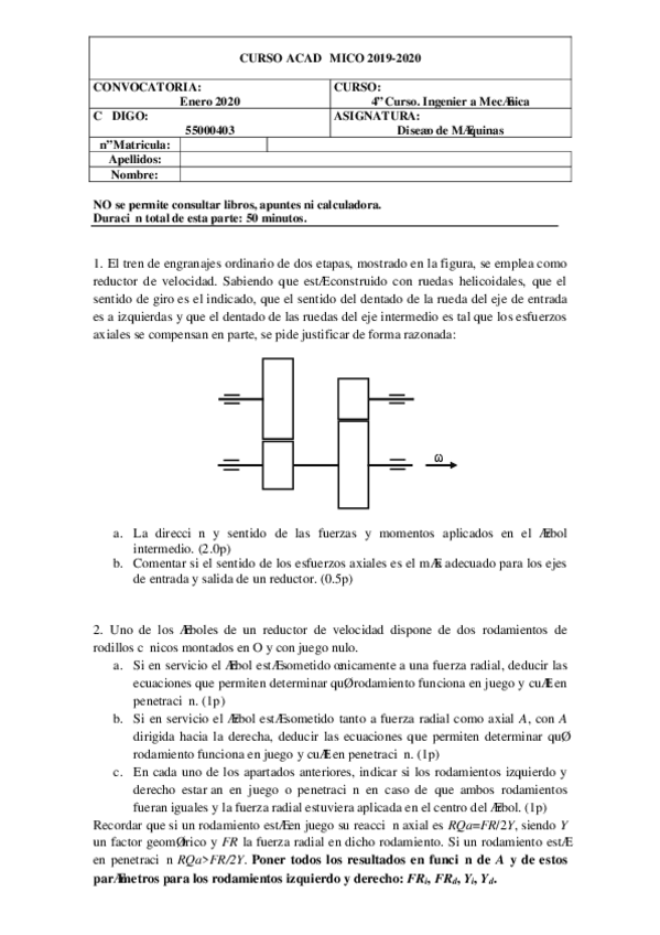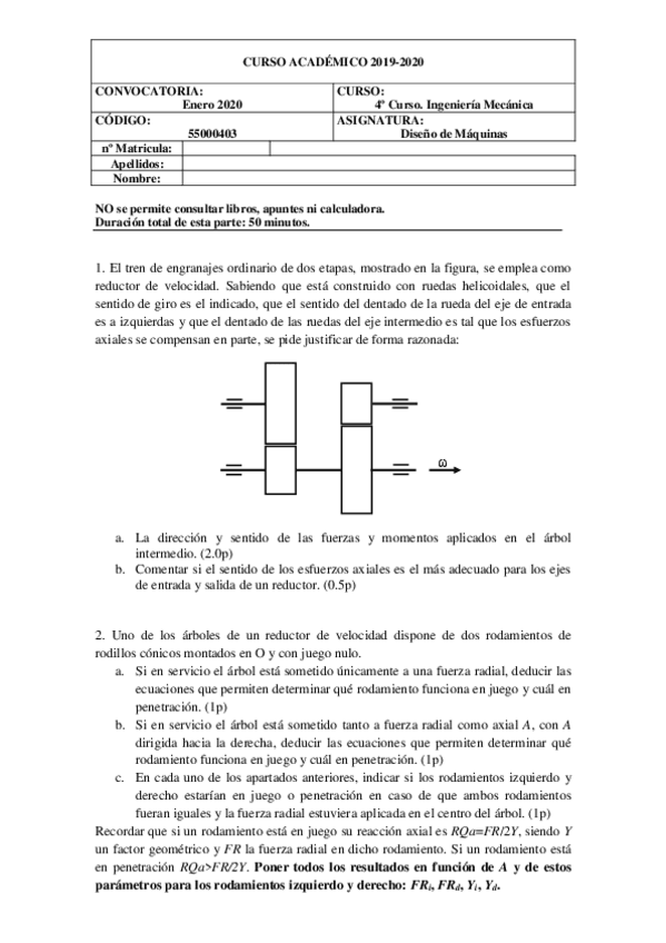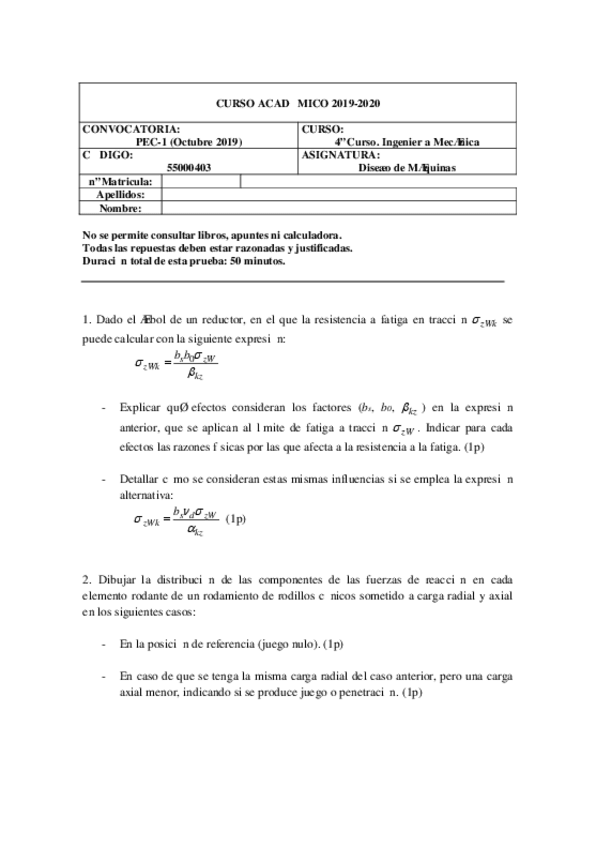 exámenes diseño de máquinas con solución