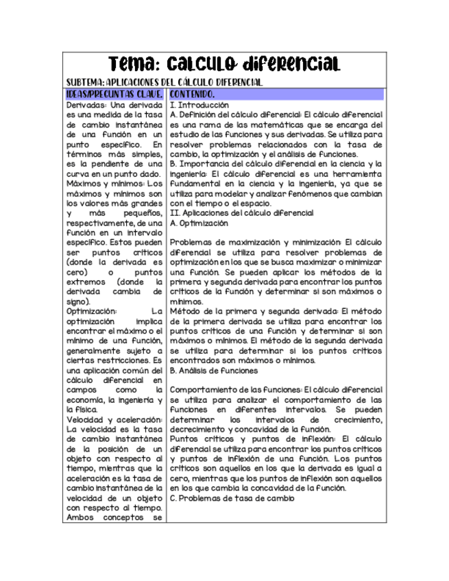 Apunte con método Cornell sobre las aplicaciones del cálculo diferencial