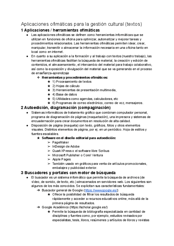 APLICACIONES OFIMÁTICAS PARA LA GESTIÓN CULTURAL (TEXTOS)