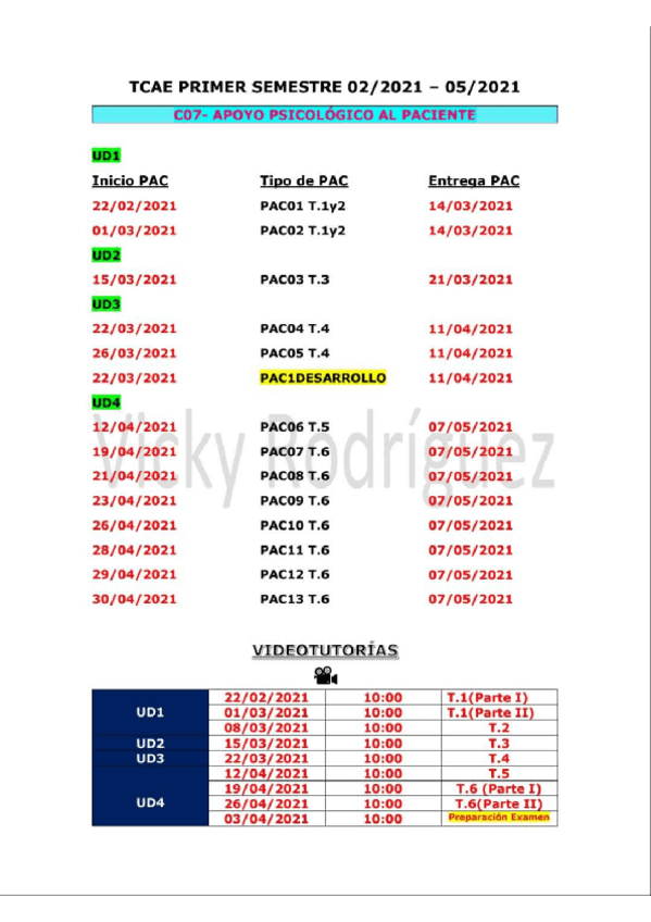 Aquí os dejo como me organizo las Pac y Video-Tutorías en este 1erSemestre por si os ayuda como referencia. Saludos !!!?
