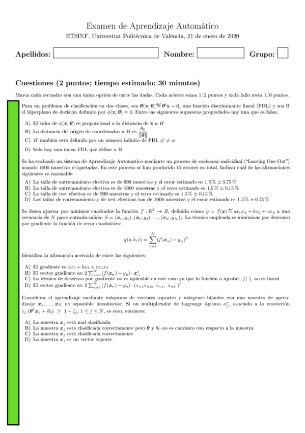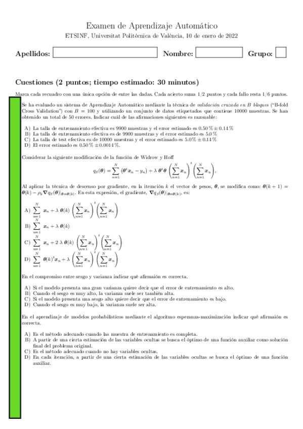 He publicado nuevos apuntes de 4º Aprendizaje Automático: EXAMENES AÑOS ANTERIORES
