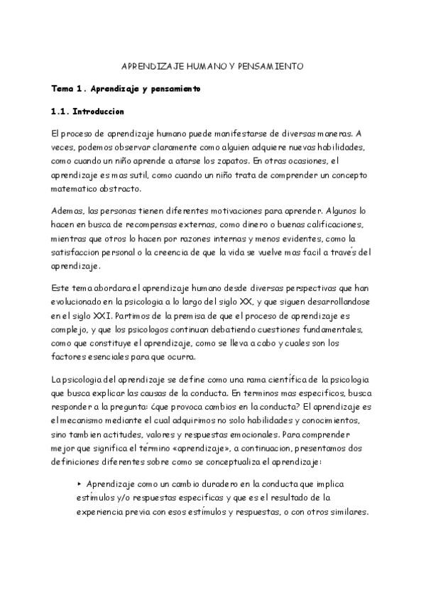 Apuntes bonitos de la asignatura de Aprendizaje humano y pensamiento de la UNIR