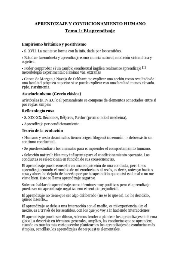 TEMARIO COMPLETO APRENDIZAJE Y CONDICIONAMIENTO HUMANO