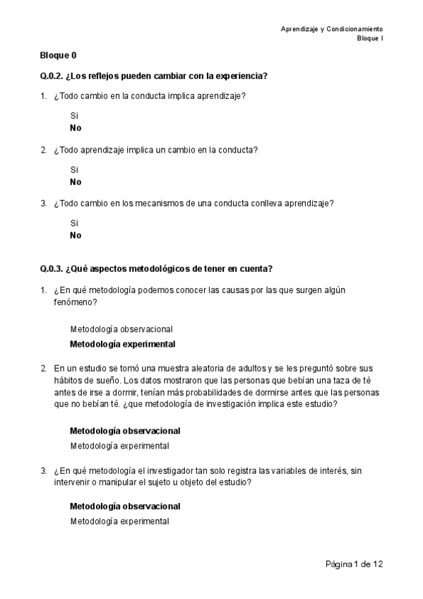 Aprendizaje y condicionamiento Bloque 0