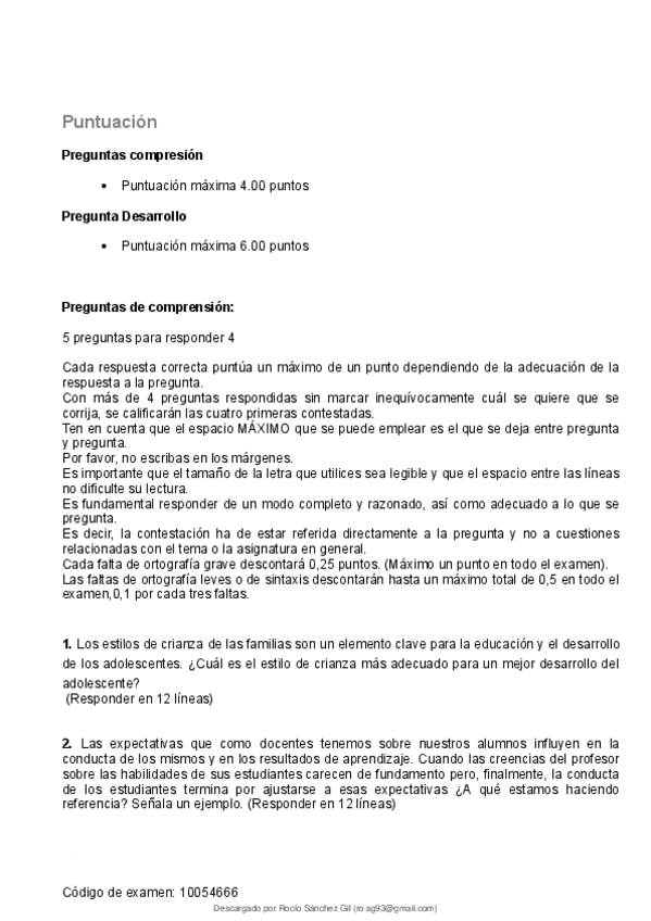 Examen de Aprendizaje y Desarrollo de la Personalidad en la especialidad de Biologia y Geologia. Nota: 9.4