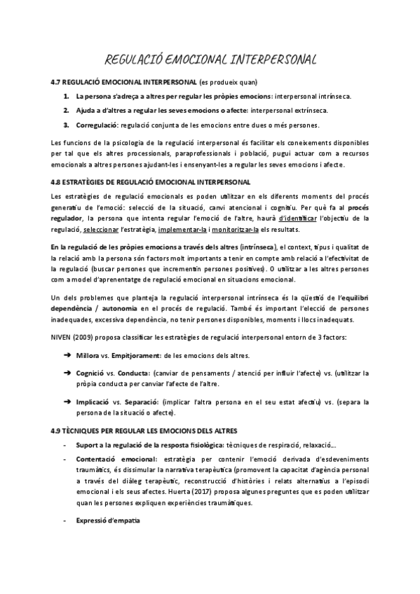 Regulació emocional interpersonal, estreteges d'aquesta regulació i les tècniques per regular els emocions dels altres.